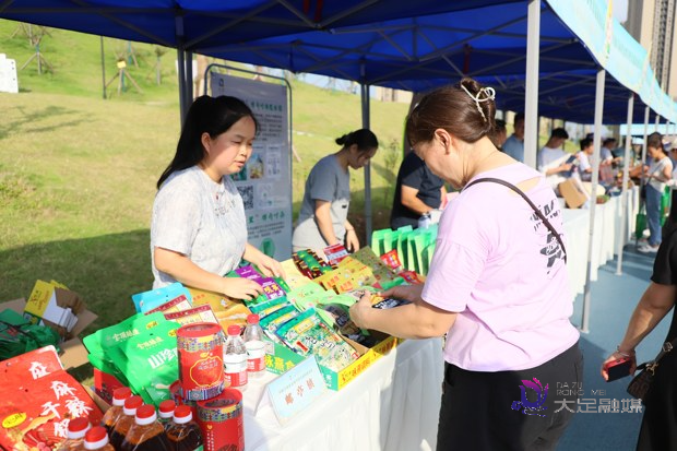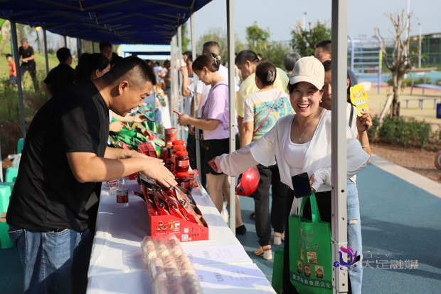 销会现场,智凤街道邓鼎计火锅底料、回龙镇高粱酒、宝兴镇熊猫雷竹、珠溪镇大足冬菜、玉龙镇草菇、龙水镇腊肉、古龙镇禅茶、拾万镇“拾万香”大米······各个镇街的优质农产品摆满摊位,销售价格也十分实惠。众多游客边逛展会边感叹大足各镇街各显神通、百花齐放,农业发展成果丰硕,“特产”众多,趁着价格实惠,赶紧多买一些,一次装满汽车后备箱。