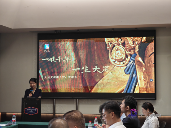 大足区科技局局长曾建飞以"诗与远方"为主线,系统呈现大足文旅的多元魅力:从被誉为"人类石窟艺术史上最后丰碑"的世界文化遗产,到四季分明的生态景观;从烟火气十足的人间百味,到充满科技感的文旅新业态。精彩的推介展现了大足以文塑旅、以旅彰文的创新实践,赢得现场一致认可。