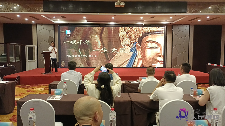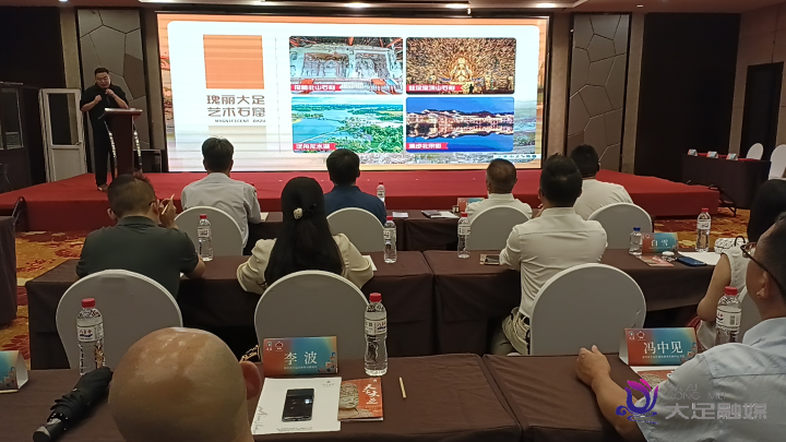 接下来的大足文旅推介环节,推介官刘小仝从历史文化、自然景观、民俗风情等多个维度展开介绍,邀请大家去到重庆唯一的世界文化遗产所在地——大足,赴一场千年石刻之约。除了以大足石刻的金字招牌盛情相邀,还有新时代的文化现象级地标和秀丽的四季风光以及活色生香的舌尖美味。让人感受到大足的美,不仅在于风景与美食,更在于开放合作的诚意。