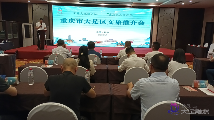 7月18日上午,由重庆市大足区政府副区长钱虎率队,大足区农业农村委、文化旅游委、林业局、工商联、文旅集团相关负责人组团赴辽宁省沈阳市开展大足——辽宁文旅推介会暨商会对接活动。带着重庆大足的千年石刻瑰宝、山水人文之美,来到魅力无限的辽宁省,共叙两地情谊,共谋文旅发展。