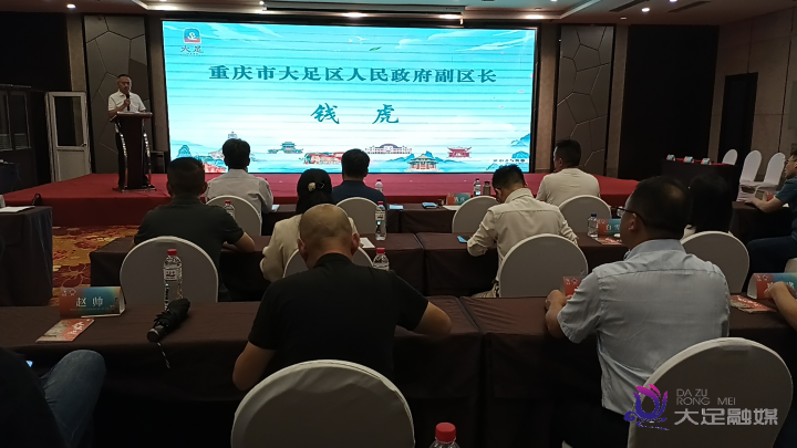 大足区农业农村委主任袁烽主持本次活动。“巴山渝水情,辽沈大地行。”现场播放了大足区文旅宣传片。“天下大足,福满人间。”片子以细腻的镜头语言,将大足石刻的恢弘、龙水湖的灵动、乡村田园的静谧一一呈现,让现场嘉宾提前领略了大足的文旅风采。