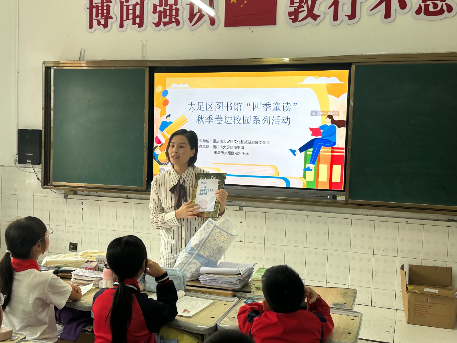 近日,大足区图书馆“四季童读”秋卷系列阅读推广活动走进双路小学,旨在通过馆校合作,激发少年儿童的阅读兴趣,培养良好的阅读习惯。