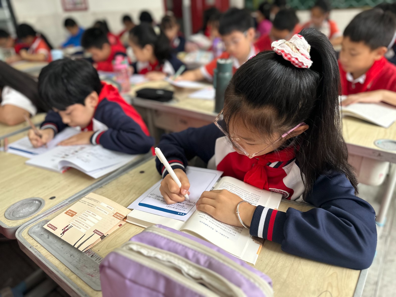活动开展当日,双路小学同学们以饱满热情沉浸式参与各类阅读活动。其中,阅读挑战赛环节有序推进:小读者们从图书馆工作人员处领取“四季童读”阅读挑战赛专属阅读卡,在完整阅读指定书籍后,将个人阅读感想以绘画创作或文字记述的形式,悉心誊录于阅读卡背面,充分展现阅读思考成果。与此同时,“四季童读”秋季卷“最美书摘”活动同步开展,小读者们围绕推荐书目,精心摘抄其中精彩句段,在品读文字的过程中,深度感受阅读的独特魅力。