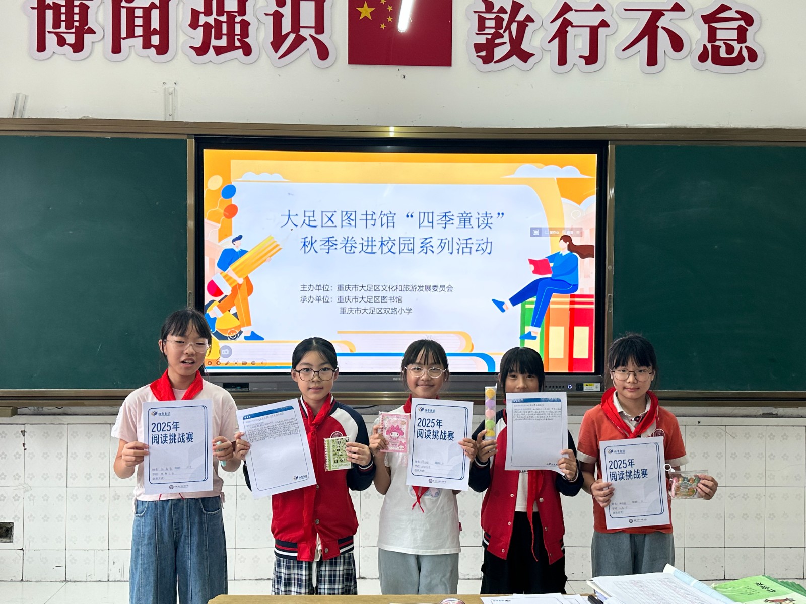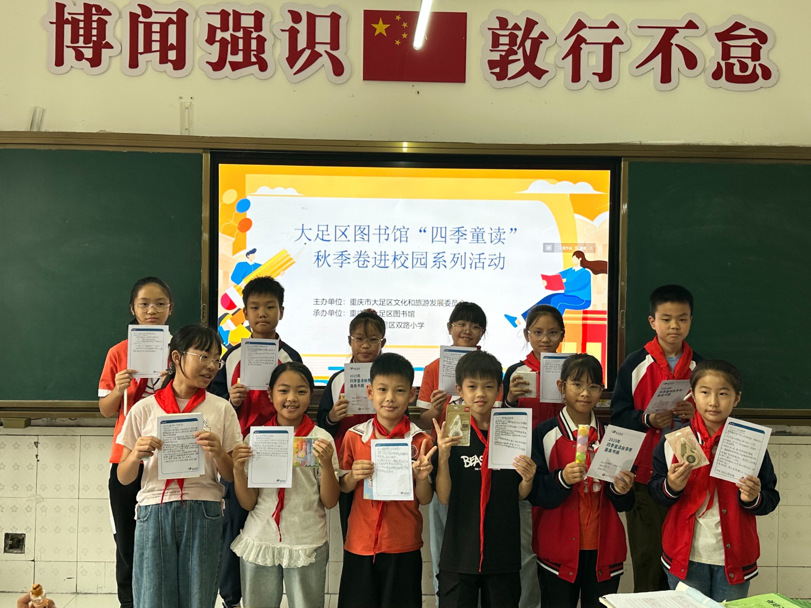 此次阅读推广不仅丰盈了双路小学校园文化肌理,更搭建起孩子们与优质书籍对话的桥梁。后续,大足区图书馆将持续深化馆校合作模式,策划并落地更多高质量阅读推广活动,以书香浸润童心,以阅读赋能成长,为培养新时代好少年积极贡献力量。