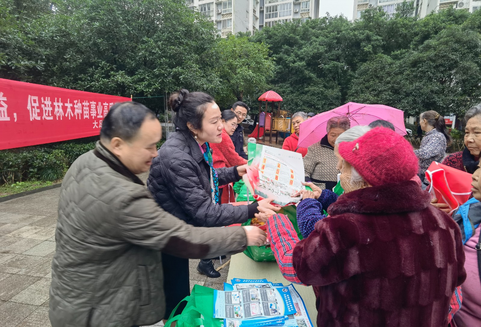 活动现场,工作人员通过悬挂标语、发放宣传资料、宣传手袋、围裙及有奖问答等形式,向过往群众讲解森林防火、野生动物保护、种子法、森林病虫害防治等知识,对群众提出的疑问进行了耐心的答疑解惑,并提醒广大群众携手共护森林,关爱野生动物,增强保护自然资源、爱护大自然的意识。此次活动,悬挂宣传标语5条;向群众发放宣传资料1万余份,宣传手袋3000余个,围裙1500余条,接待咨询群众60余人次。通过活动的开展,增强了群众的森林防火、野生动物保护及自然资源保护的意识,得到了广大群众的一致好评。