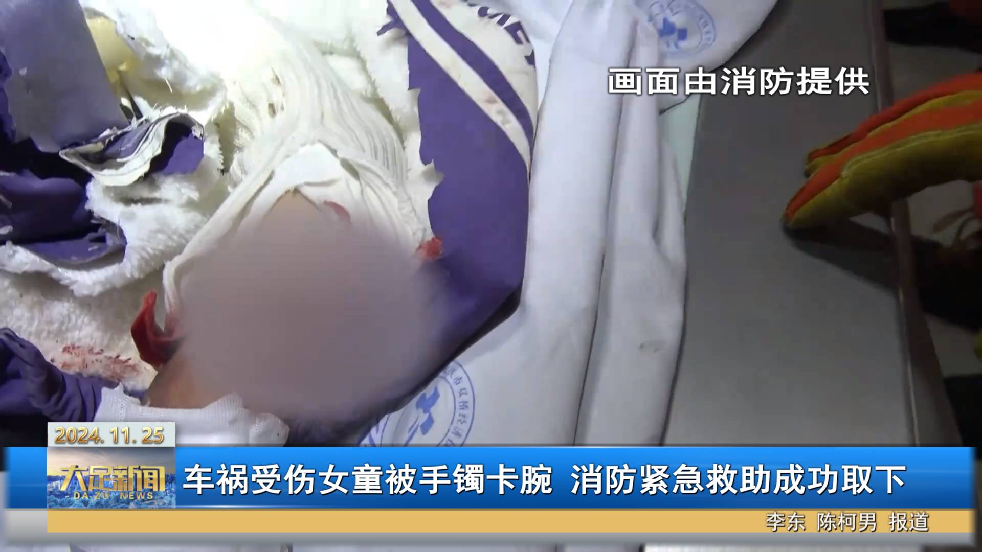 车祸受伤女童被手镯卡腕 消防紧急救助成功取下