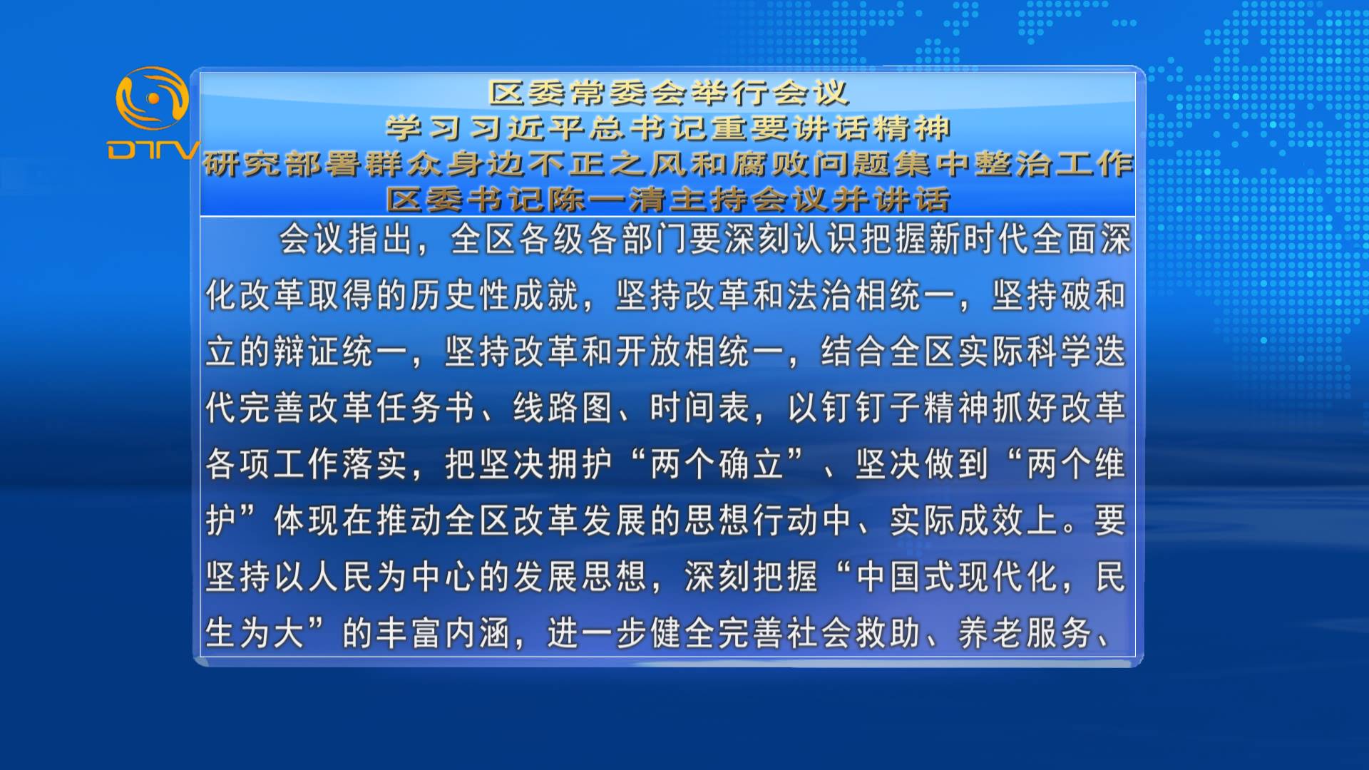 区委常委会举行会议 学习习近平总书记重要讲话精神 研究部署群众身边不正之风和腐败问题集中整治工作 区委书记陈一清主持会议并讲话
