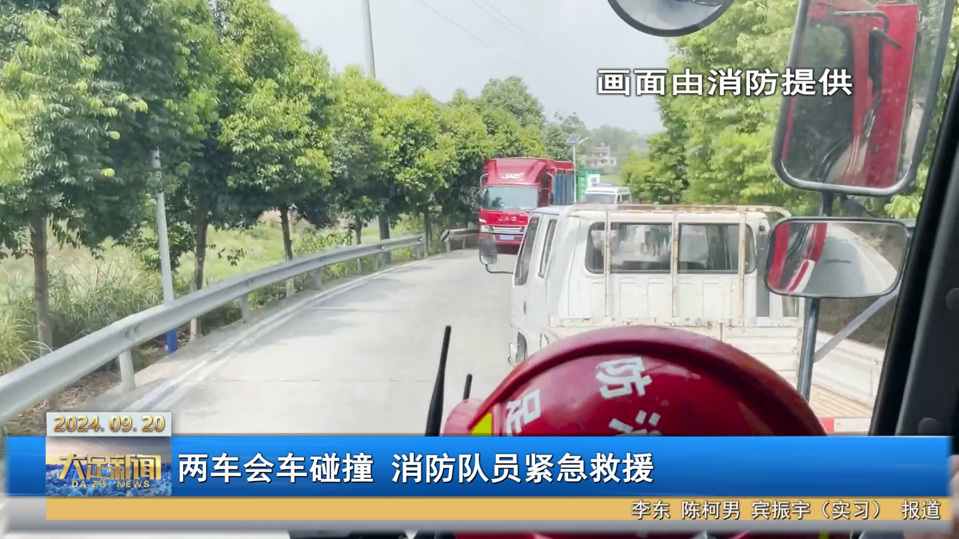 两车会车碰撞 消防队员紧急救援