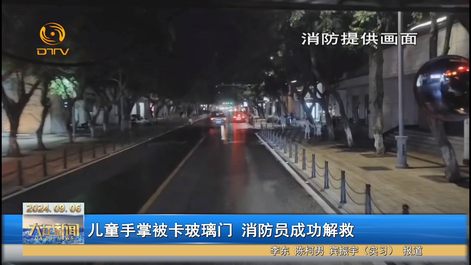 儿童手掌被卡玻璃门 消防员成功解救