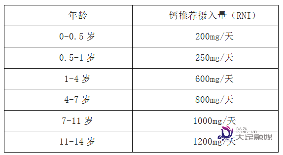 人体对钙的需要量受年龄、性别、遗传、饮食、生活方式、地理环境等影响,根据 2018 年《中国居民膳食营养素参考摄入量第2部分:常量元素》[1]制定的标准,儿童的钙元素推荐摄入量为: